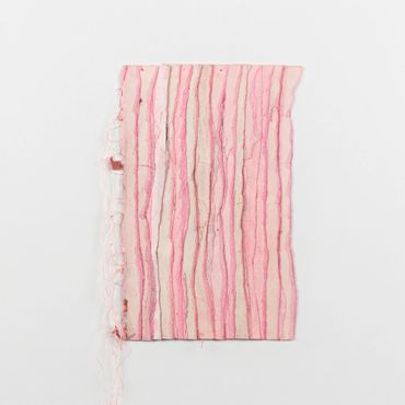 Hundreds of dismantled books have been torn systematically down to the slim margins. All of the words have been ripped away. A response to the historical loss of words.
